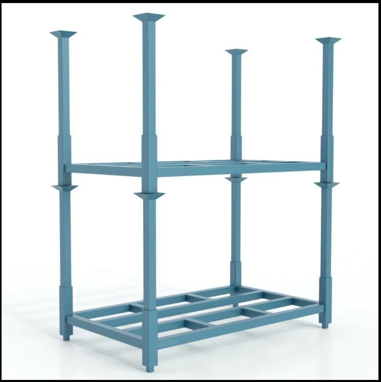 A estrutura das estantes de empilhamento consiste tipicamente de uma base e quatro postes verticais.de peso não superior a 50 kgOs postes verticais, que podem ser fixados ou desmontáveis consoante o projecto, servem para manter os materiais empilhados no lugar e evitar qualquer queda acidental.Alguns modelos de estantes de pilha também apresentam painéis de malha laterais ou traseiros para maior segurança.
